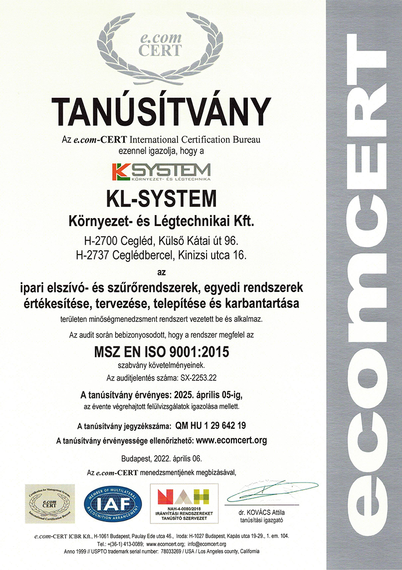 A KL-SYSTEM olyan vállalat a szektorban, amely mind a légszűrésben, mind a folyadékszűrésben érdekelt. Ez lehetővé teszi számunka az integrált technikai megoldások létrehozását. A szűrési és tisztítási területen erősségünk a termékeink személyre szabása a megrendelő igényeinek megfelelően állunk rendelkezésükre az egyidejű lég- és folyadékszennyezési problémák integrált megoldását illetően. Tapasztalatunk kézzelfogható bizonyítéka az országszerte működő sok száz rendszerünk.